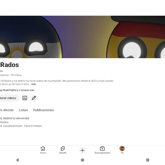 Hola soy CB Rados y me dedico ha hacer videos de countryballs. Me apasionaron desde el 2023 y haré cumplir ese sueño de mi yo de hace 2 años50 subs✅100 subs✅150 subs✅1000 subs❌ ———————2050 subs❌3000 subs❌5000 subs❌100000 subs❌