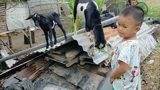 hungry goats eating mango leaves