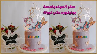 Decorating a cake with a unicorn and enchanting butterflies using purple frosting: a step-by-step...
