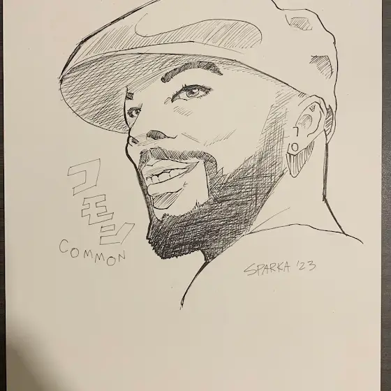 Manga style inking practice. Oki-san from Oki Dub Ainu Band, and Common (favorite rapper). Both huge influences on my music.