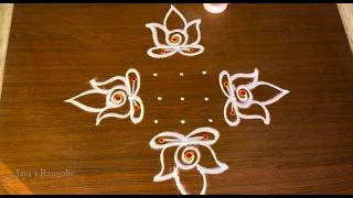 3x3 Dots .Simple Daily Muggu 🌹 | Easy Louts Flower 🌹 Rangoli Kolam Design | Small & Beautiful Design