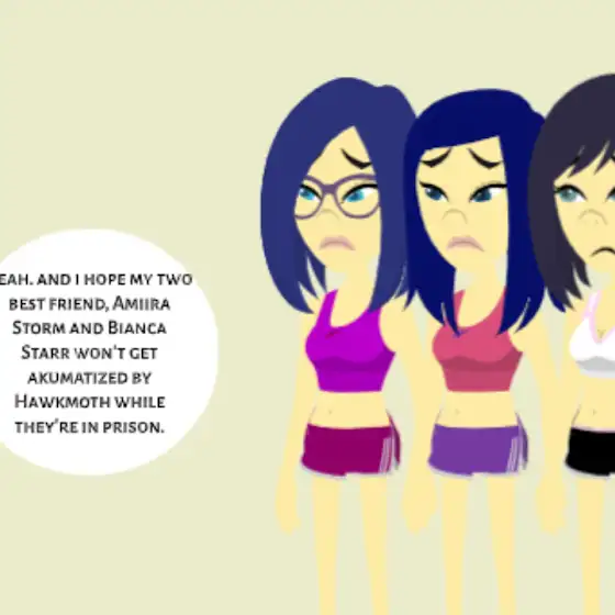 After i told Chizuru, Reiko, Leah, and Sena about the akumatizations, and someone got akumatized by Hawkmoth. Chizuru, Reiko, Leah, and Sena heard about the akumatizations and Hawkmoth. Leah Kingsley is nervous about Hawkmoth would akumatize Chizuru, Reiko, Leah, and Sena and turn them into evil. however, i warned Chizuru, Reiko, Leah, and Sena about the akumatizations and Hawkmoth.