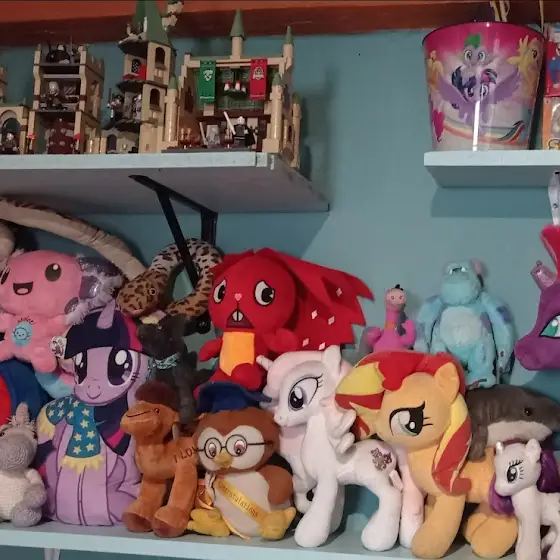 Por cierto, les comparto fotos del reacomodo que hice de mis ponis, superheroinas, monstruitas, magas y princesas.