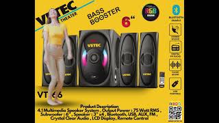 Vetec 4.1 Home Theater with a 6” woofer is a powerful sound system