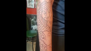 Background Fill In On Arm Sleeve #strangemusic #comedytragedymasks #forearmsleevetattoo #boldtattoos