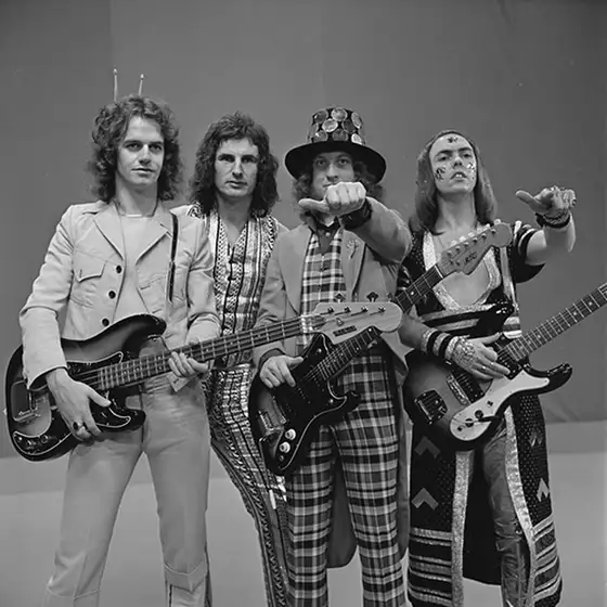 Formed in Wolverhampton in 1966, Slade's chart career spanned 3 decades. Slade were unstoppable throughout the seventies becoming one of Europe's biggest bands, releasing 6 smash hit albums, including three No-1’s, and their hit singles are synonymous with the era. The sensational songwriting partnership of Noddy Holder and Jim Lea provided a soundtrack to the Glam Generation and with a run of 17 consecutive Top 20 singles between 1971 and 1976, no other act of the period experienced such success.
