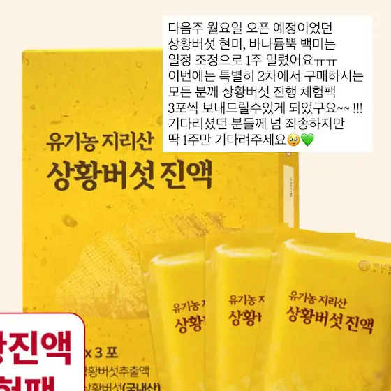 상황버섯 진액 체험팩(3포)가 들어있는데