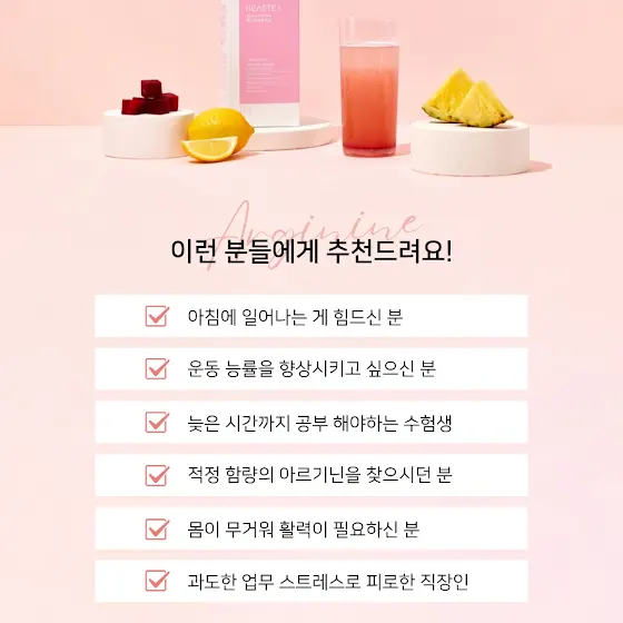 아침 공복에 아르기닌을 챙겨 먹어요.