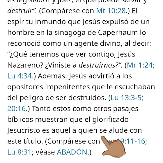 "Cuando Jesús estuvo en la tierra como hombre. era hebreo, y ahora, en su calidad de Ejecutor real de Jehová, se le llama con el nombre hebreo Abad'don, que significa Destrucción. En el griego en el que se escribieron las Escrituras cristianas inspiradas, su título similar es Apollyon, que significa Destructor.