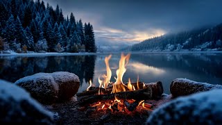 Youβre Sitting by a Campfire by the Lake βοΈπ₯ Gentle Water, Fire Crackling & Winter Ambience