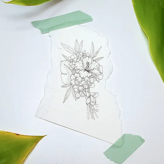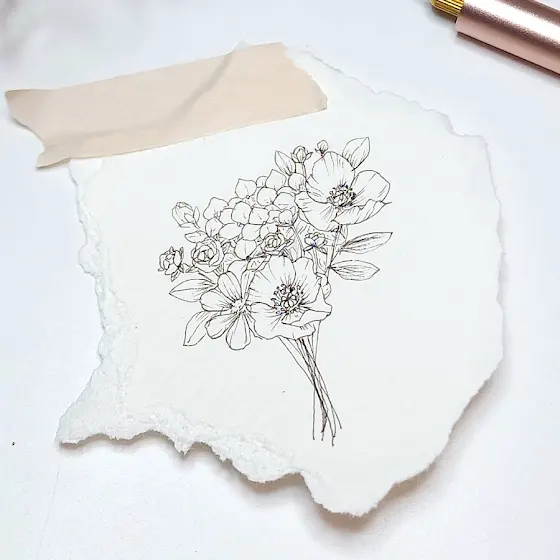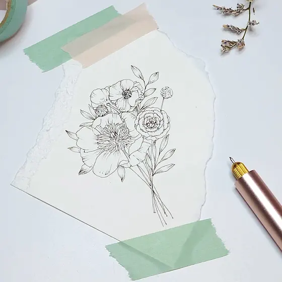 Day 96 - In black ink lines, a bouquet appears,