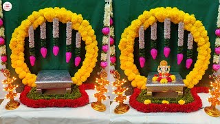 Lotus Flower Ganpati Backdrop Decoration|DIY|Ganpati Background Decoration Ideas|Easy Lotus Backdrop