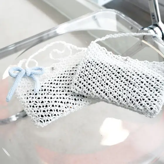 메탈얀으로 만들어 본 코바늘 실버가방 샤이니 미니백이에요.