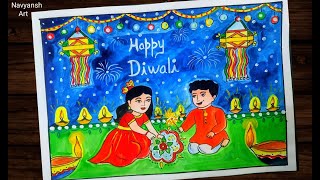 Indian festival Diwali celebration drawing / Diwali drawing step by step / How to draw Diwali poster
