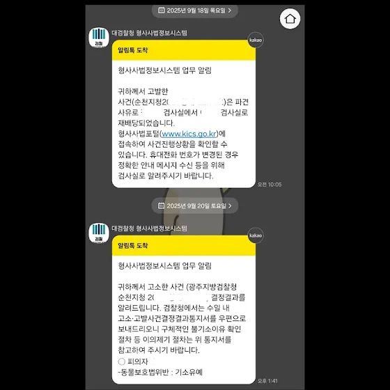오늘(25.10.15) 검찰청의 결정 결과 통지서를 받았습니다.