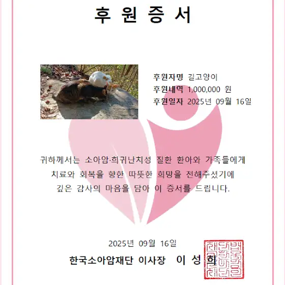 저는 이번 1만 구독자를 기념하며, 100만원을 한국소아암재단에 기부했습니다.