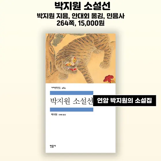 📚두 번째 책은 〈박지원 소설선〉입니다 박지원 지음 안대회 옮김 민음사 출판입니다. 264쪽 15,000원입니다 양반전, 호질, 허생전 정도만 기억나는데, 열한편을 묶어서 이번에 나왔네요. 고전 산문을 엮어서 이렇게 내주니 출판사에 정말 감사합니다