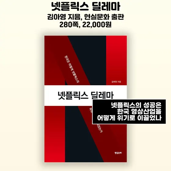 📚두 번째 책은 〈넷플릭스 딜레마〉입니다 김아영 지음 현실문화 출판입니다. 280쪽 22,000원입니다 미디어 문화연구자인 저자가 영화, 드라마, 방송 등 현장에서 일하고 있는 사람들을 만나 인터뷰한 내용이라고 합니다. 넷플릭스의 성공이 한국 영상산업의 구조적 위기를 만든 내용을 살펴본다고 합니다. 최근엔 김태호 PD도, 나영석 PD조차도 넷플릭스에 콘텐츠를 싣는 걸 보고선 고민하던 내용 중 하나라서 눈길이 갑니다.