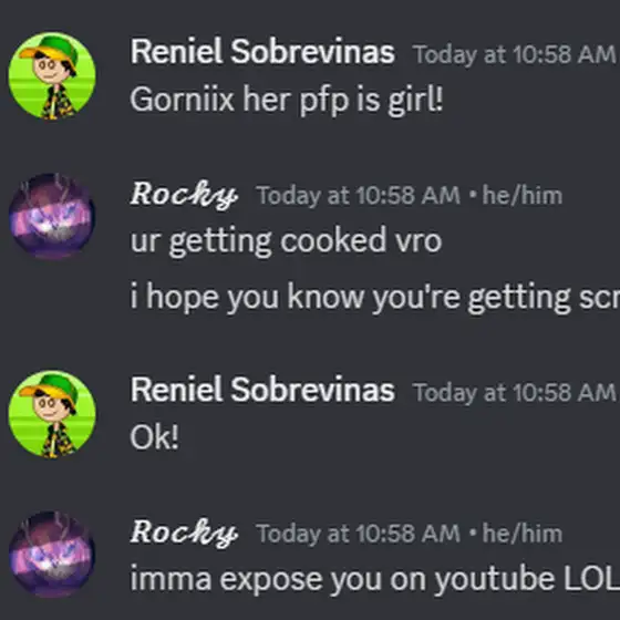 āŖ@renyellancer7168⬠we're done with you, you posted cp in our server again and raided us once again. i don't care what you do, but i'm gonna tell you this. LEAVE US ALONE. we have never did anything to you, and we're getting sick and tired of your disgusting behavior. you even raided other public servers just to harass us on there, and when we called you out, you LIED to the moderators, which never worked. you should be in prison for the shit you have done to us, but the fact of you being back? ooohh no buddy, you're not coming back, and i made sure of it. this will be the last time i'll be talking about you on my channel, as i'm going to move on as i don't need to worry about you anymore (even though i never did.) go ahead. share my post and make yourself look guilty to your friends, as they don't and never did deserve you.