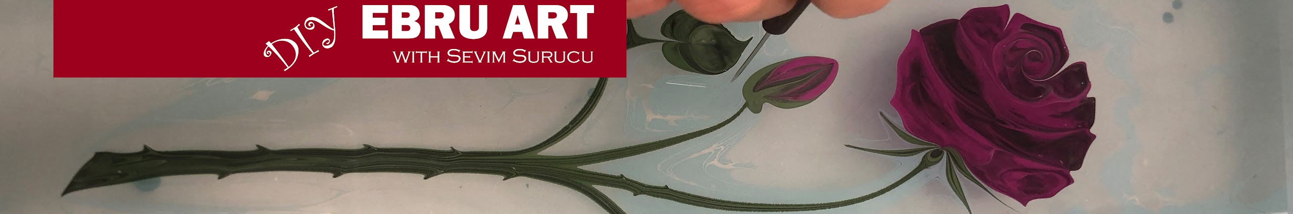 Ebru is a traditional Turkish paper marbling art of creating colorful patterns and images by sprinkling color pigments on water, then transferring them to paper. The tools are horsehair brushes, metal pins for shaping paints, specially prepared earth pigments and a tray full of water thickened with seaweed powder. The authenticity of the materials creates a mystique that will take you into the 17th century. Colors that we will be using in the workshop are also from the natural colors of masters' palettes.