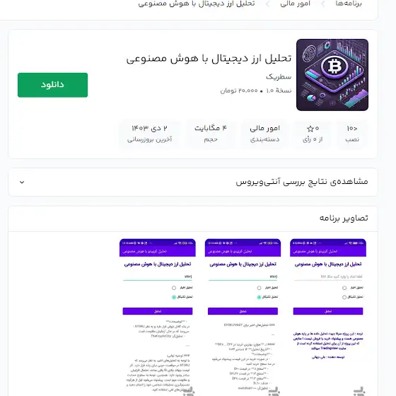 اپلیکیشن تحلیل ارز دیجیتال با هوش مصنوعی نسخه اندروید روی کافه بازار منتشر شد .