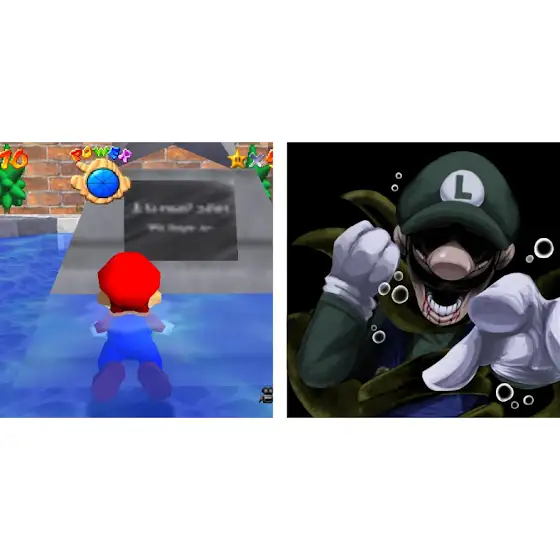 In the mod, The depiction of L is Real in the mod is having Luigi submerged in a fountain as he calls for help echoing until he perished. Although, it is stated that he is immortal. For a parallel, the Sonic creepypasta, "A Frozen Trap." In it, Amy Rose finds herself trapped within Ice Mountain Zone as she cries for help until ultimately leading to her freezing to death.