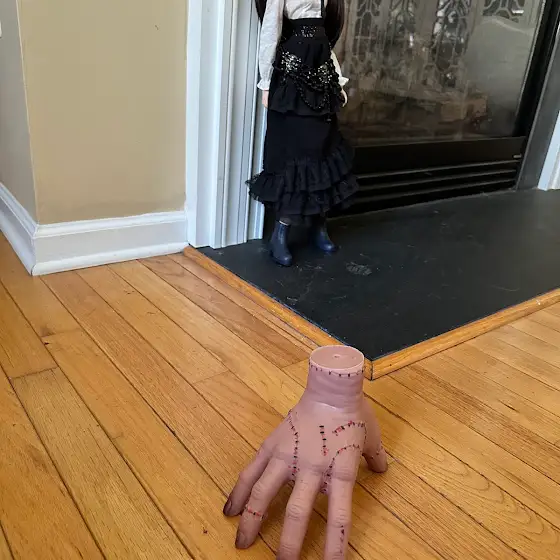 This year I spent it editing and listening to the kids run down the street treat-a-treating. The only one who got dressed was Smart doll Imagine inspired by Wednesday Addams ๐