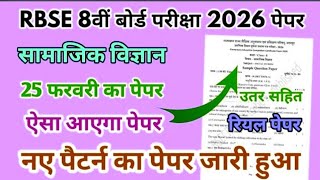 RBSE Board Class 8th Social Science Paper 25 February 2026| सामाजिक विज्ञान पेपर Solutions Class 8th