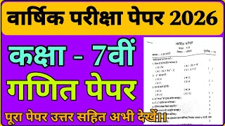 कक्षा 7 हिन्दी वार्षिक पेपर 2026 / kaksha 7 Hindi varshik paper 2026 / class 7th Hindi varshik paper