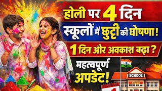 होली पर 4 दिन स्कूलों में छुट्टी की घोषणा! 1 दिन अवकाश बढ़ाने संबंधी महत्वपूर्ण अपडेट #holi #holiday