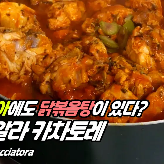 안녕하세요. 무국적키친 입니다. 오늘은 이탈리아 닭 볶음탕(?) 폴로 알라 카치아토라(pollo alla cacciatora)를 만들어 봤습니다. 남녀노소 아이들까지 모두 좋아할 맛 이네요!우리나라 닭볶음탕과 비주얼이 비슷하지만 맛은 전혀다르니 이색적으로 한번씩 드시기 좋을거같아요!오늘도 즐거운 하루되세요^^