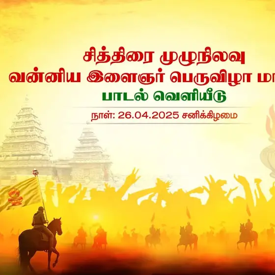 *சித்திரை முழுநிலவு வன்னிய இளைஞர் பெருவிழா மாநாட்டு பாடல் நாளை (ஏப்ரல் 26, சனிக்கிழமை) காலை 11.00 மணிக்கு வெளியிடப்படுகிறது.💥*