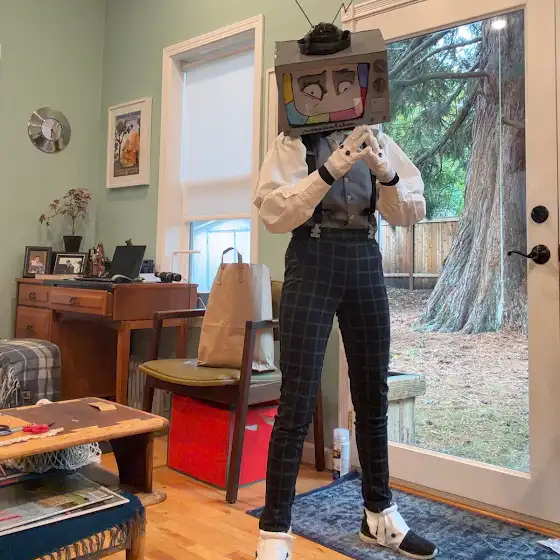 I couldn’t find a better picture of me wearing my Halloween costume during the actual thing so here’s me trying it on earlier :)