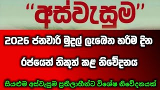 ජනවාරි අස්වැසුම මුදල් බැංකුවට වැටෙන හරිම දිනය 😍 | aswesuma news today | aswesuma january 2026