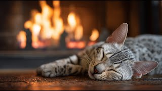 Fireplace & Soft Piano | Sleeping Kitten | Peaceful Calming Ambience for Relaxation | Crackling Fire