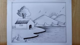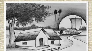 Gramer prakritik drisya drawing 💚villege art💛 villege scenery drawing tutorial with pencil and clour