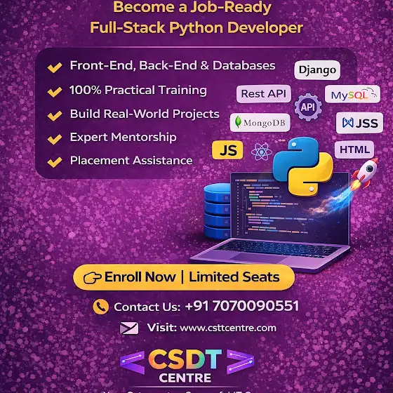 At CSDT Centre, our expert trainers focus on practical learning, live coding sessions, and project-based assignments to help students become industry-ready professionals. Whether youβre a beginner or looking to upgrade your skills, our training programs cover everything from basic programming to full-stack development and data analysis.