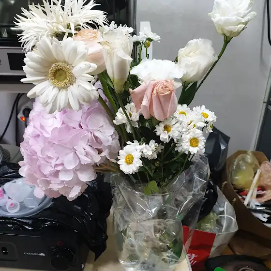 같은회사서만나 결혼식도 회사서하니 더뜻깊을듯 식후 꽃들다시 다발로만들어 선물로 하객들께 선사하니 더좋음