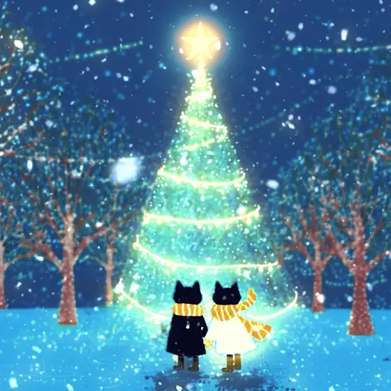 ツリーの優しい明かりと暖かさに包まれて、 どうやら夢の中へ落ちてしまったようです。