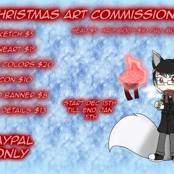 I'm having new opening of Christmas Art Commissions start by Dec 15th till end of Jan 5th, let you guys know about it.