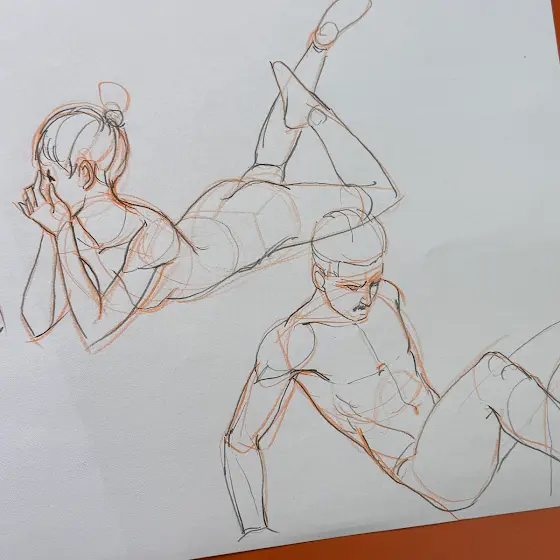 2–3 times a week, we draw the same practice pieces together.