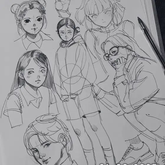 Hello, this is Chommang. Recently, I’ve been doing a lot of ballpoint pen drawings and croquis, usually before going to bed. What materials do you usually use for your drawings? Are you enjoying your drawing time? :)
