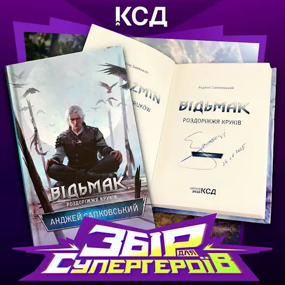 - Книга "Відьмак: Роздоріжжя круків" з автографом Анджея Сапковського та всі 8 книг про Ґеральта