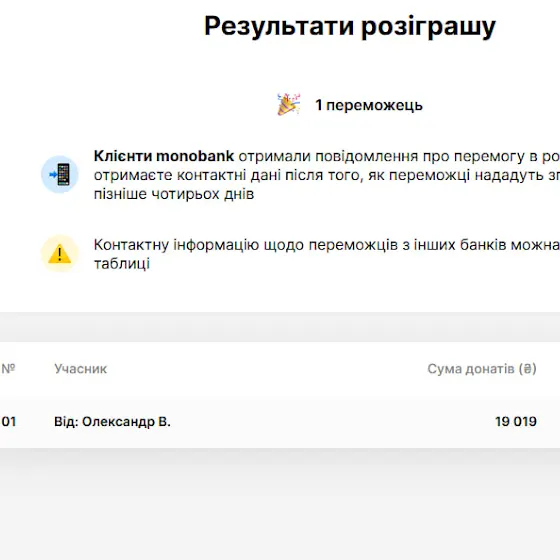Congratulations to the winners of the raffle! The main prize will go to Mykola M., and the prize for the largest donation will go to Ruslan P.