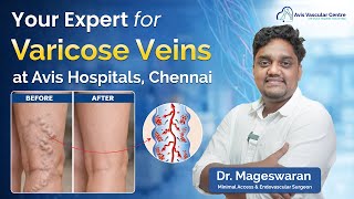 Welcome to AVIS Vascular Centre, now in Tamilnadu! We offer world-class, non-surgical vascular treatments for conditions like Varicose Veins, Spider Veins, Lymphedema, Uterine Fibroids, Venous Leg Ulcers, and Deep Vein Thrombosis (DVT). Founded by Dr. Rajah V Koppala and led by the expertise of Dr. Mageswaran Perumal, our team provides minimally invasive solutions for faster recovery, reduced discomfort, and excellent results. With cutting-edge technology and patient-centered care, we help you achieve healthier, pain-free legs.
