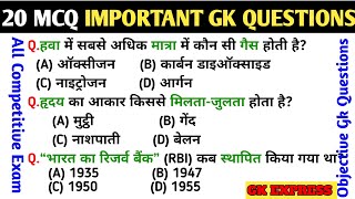 20 MCQ महत्वपूर्ण GK QUESTIONS II सामान्य ज्ञान प्रश्न ll GK HINDI QUIZ QUESTIONS ll GK/GS Question📝