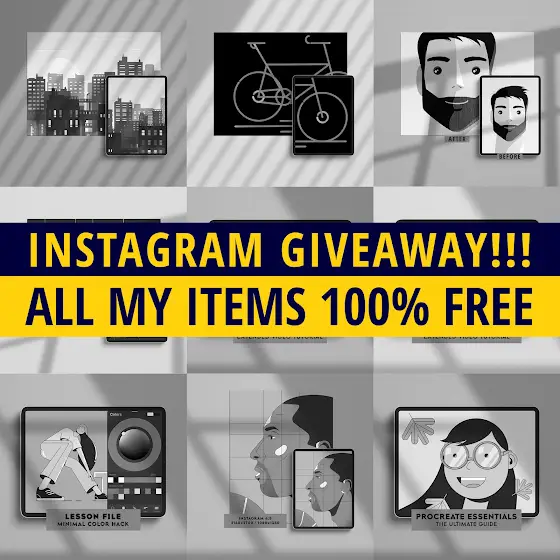 GIVEAWAY INCOMING!!! Celebrating our growing community on Instagram, I'm going to pick a winner EVERY WEEK for the month of February and March to WIN EVERYTHING on my Gumroad site - that includes all my BRUSHES, my 5 HOUR PROCREATE COURSE, HELPER files and MORE! All you have to do to participate is to make sure to FOLLOW me on Instagram - and then stay tunned for the winners coming out every Friday!!! 👍✨🌟 www.instagram.com/theghostpaper/