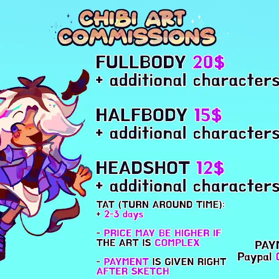 Haii hello there!! I genuinely apoligize if it has been awhil since ive posted, i promise i will come back soon from hiatus but at the moment i am still focusing on financial problems so i thought id like to also share some of my art commissions here!!