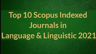Top 10 Scopus Indexed Journals in Language & Linguistic with Fast Publishing 2021 |Research Guidance