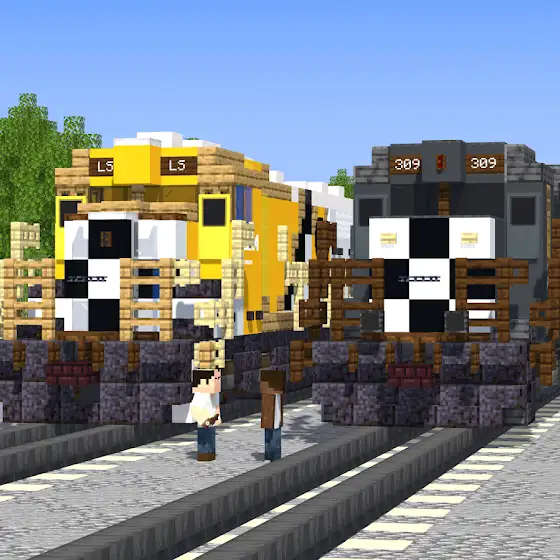 Carl Johnson from the GTA 3D Universe competes with Trevor Philips from the GTA HD Universe, both join the world of Minecraft to race two trains from two separate games in the GTA Series. The yellow one resembles the GTA V Train Trevor Philips will be driving and the gray one resembles the GTA San Andreas Train CJ will be driving.